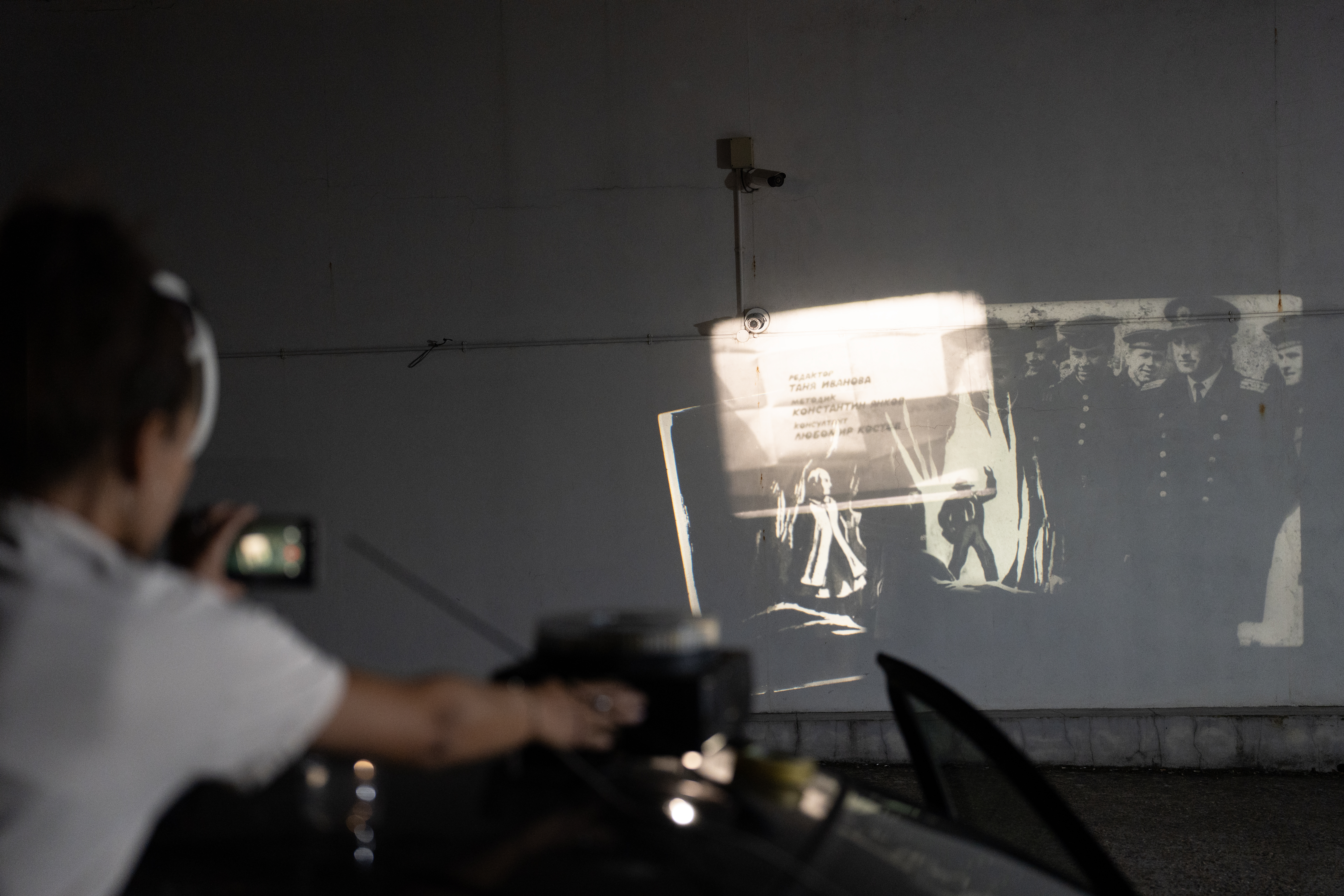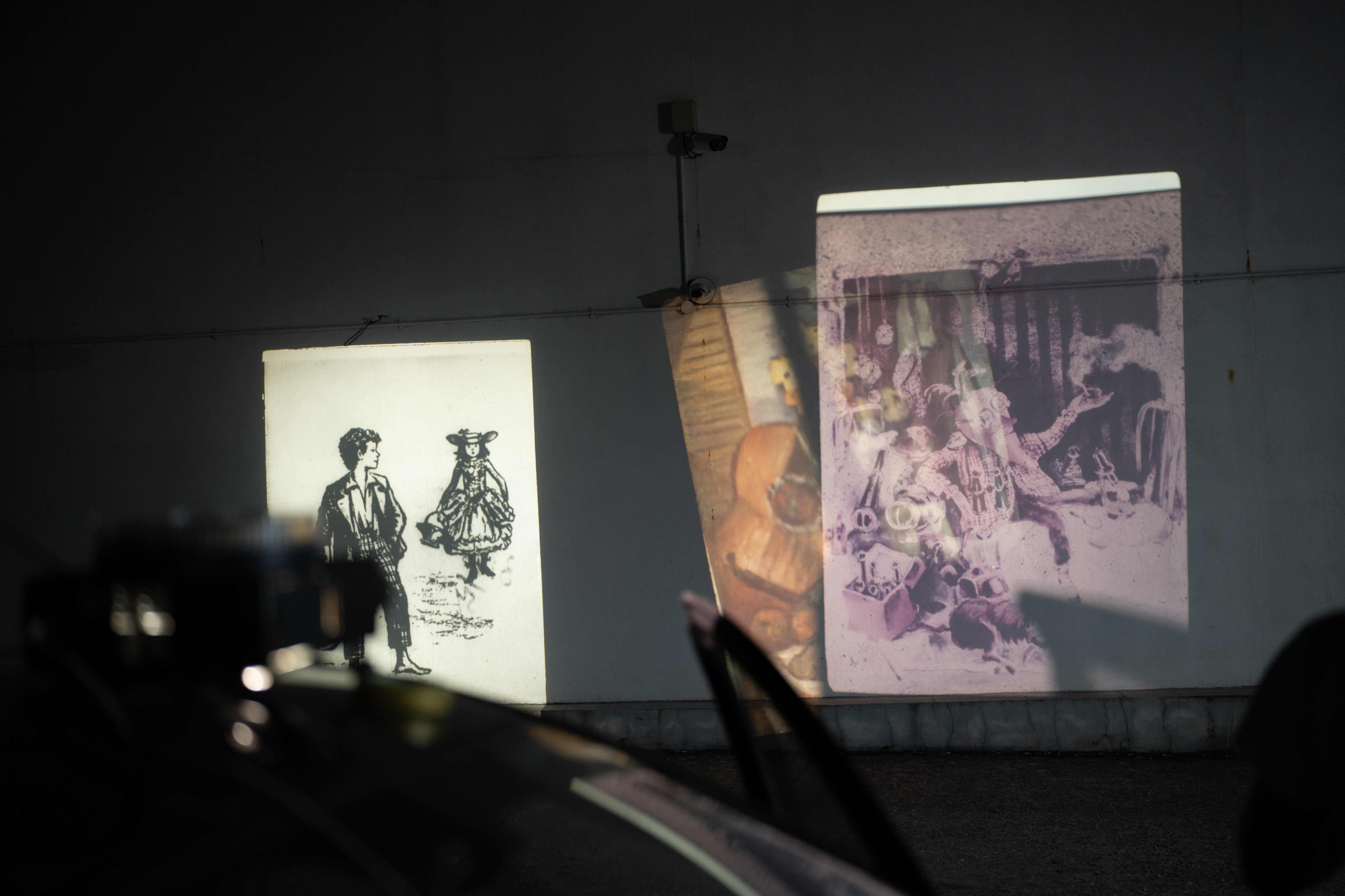 35mm slide and 16mm reel projection, Cell Studios car park, South Bermondsey Art Trail 2025