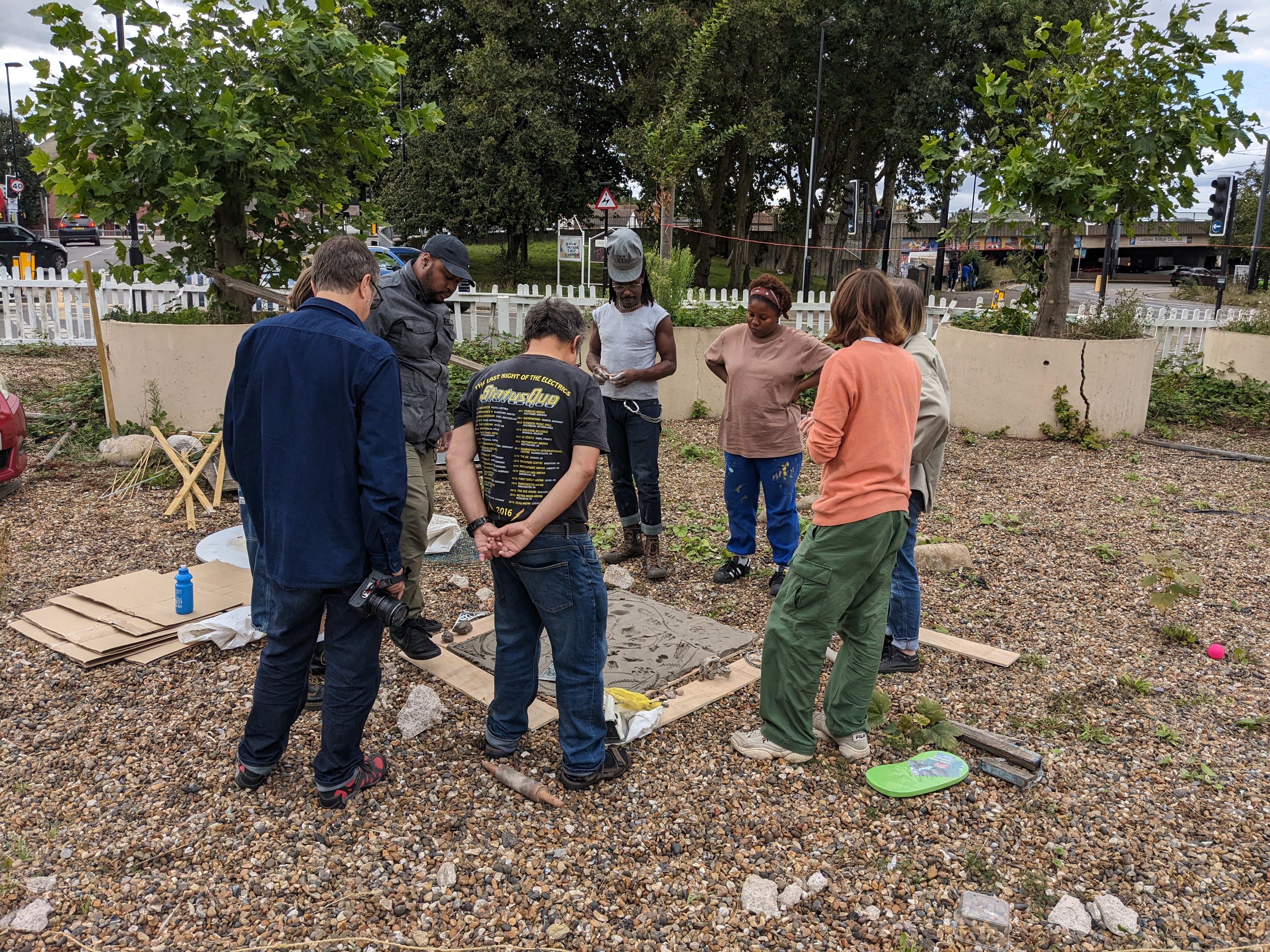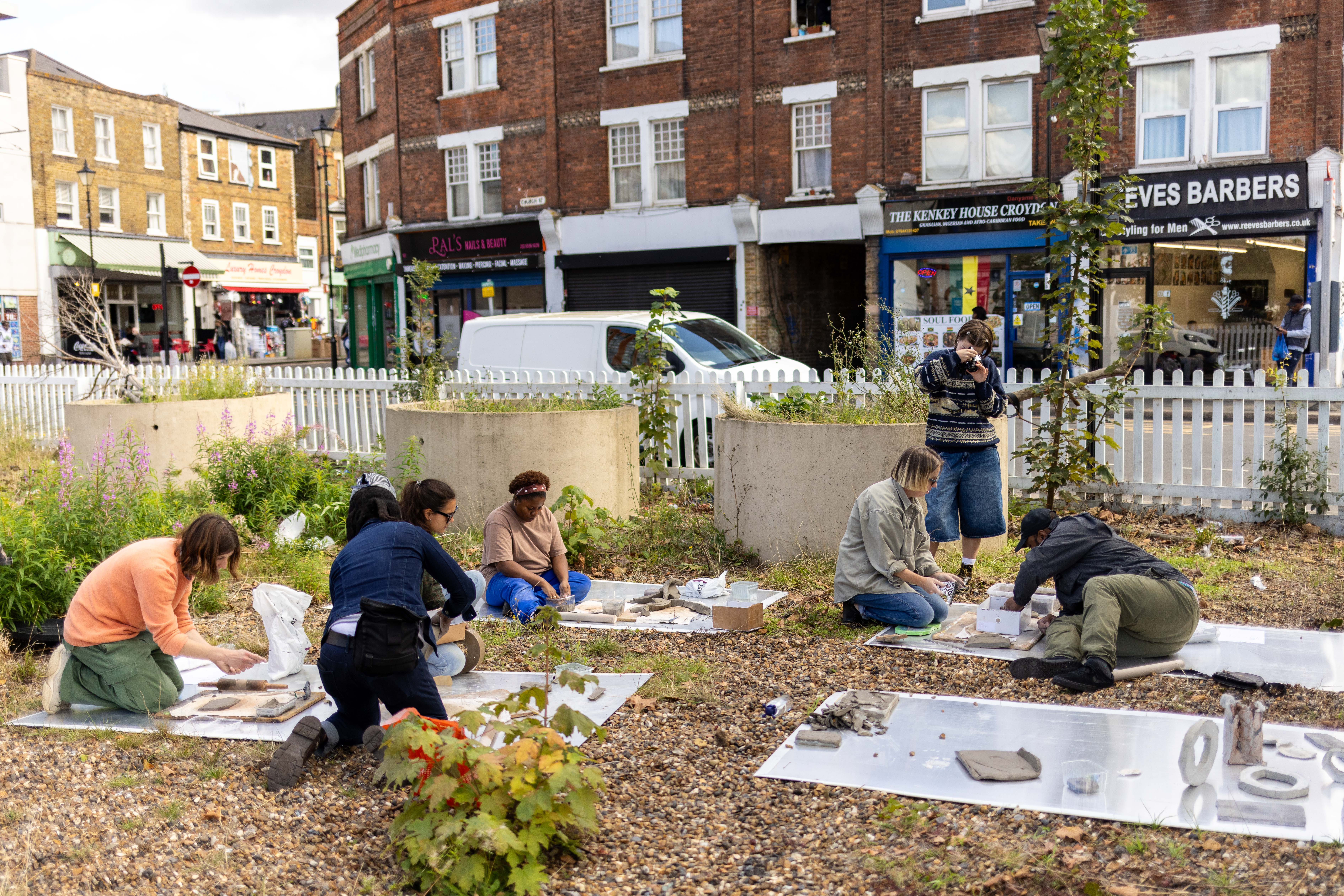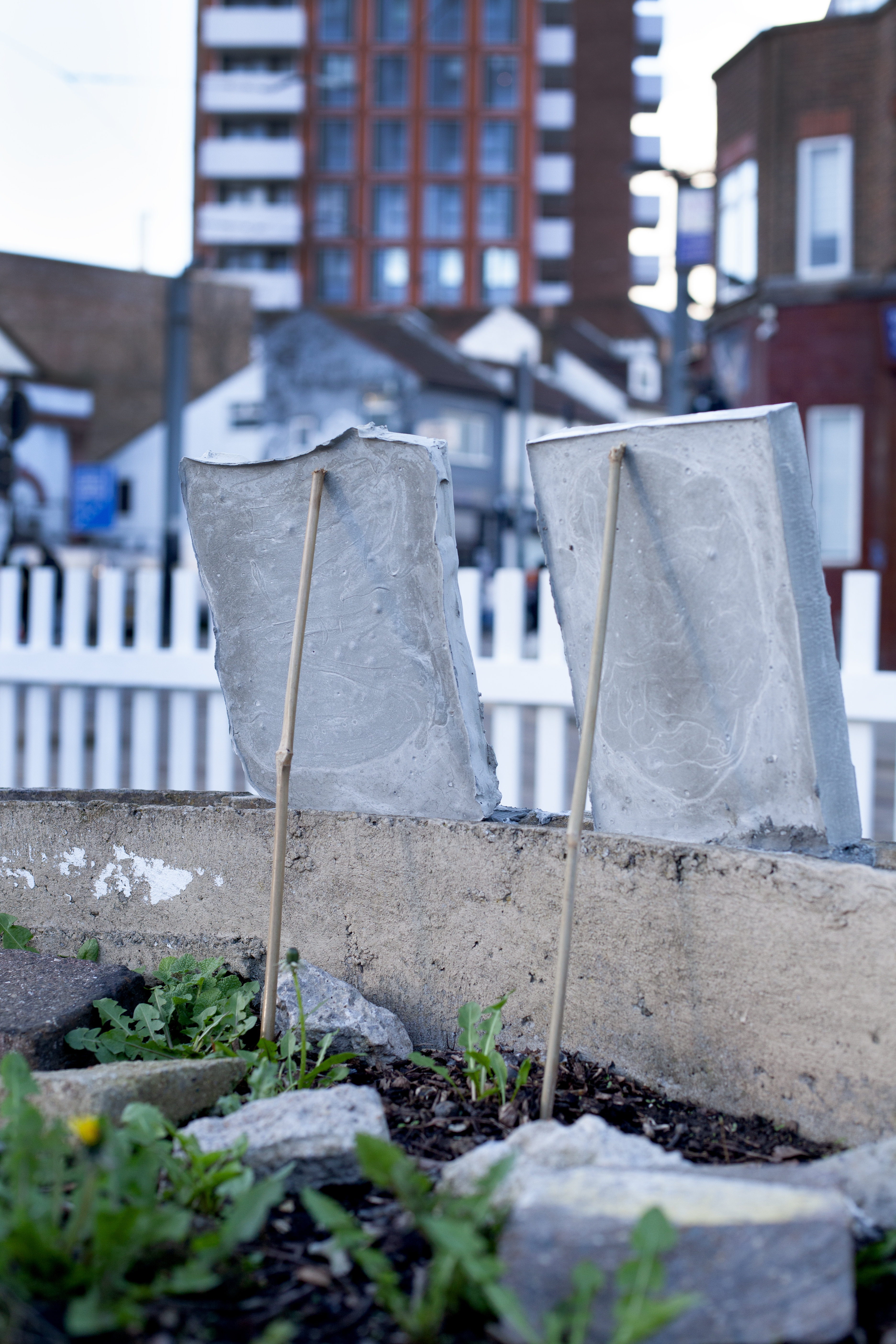 a temporary, site specific installation of photography and sculpture produced by members of the local community on the site of Reeves Corner during workshops, part of commission series Desire Paths, as part of This Is Croydon, London Borough of Culture 2023
