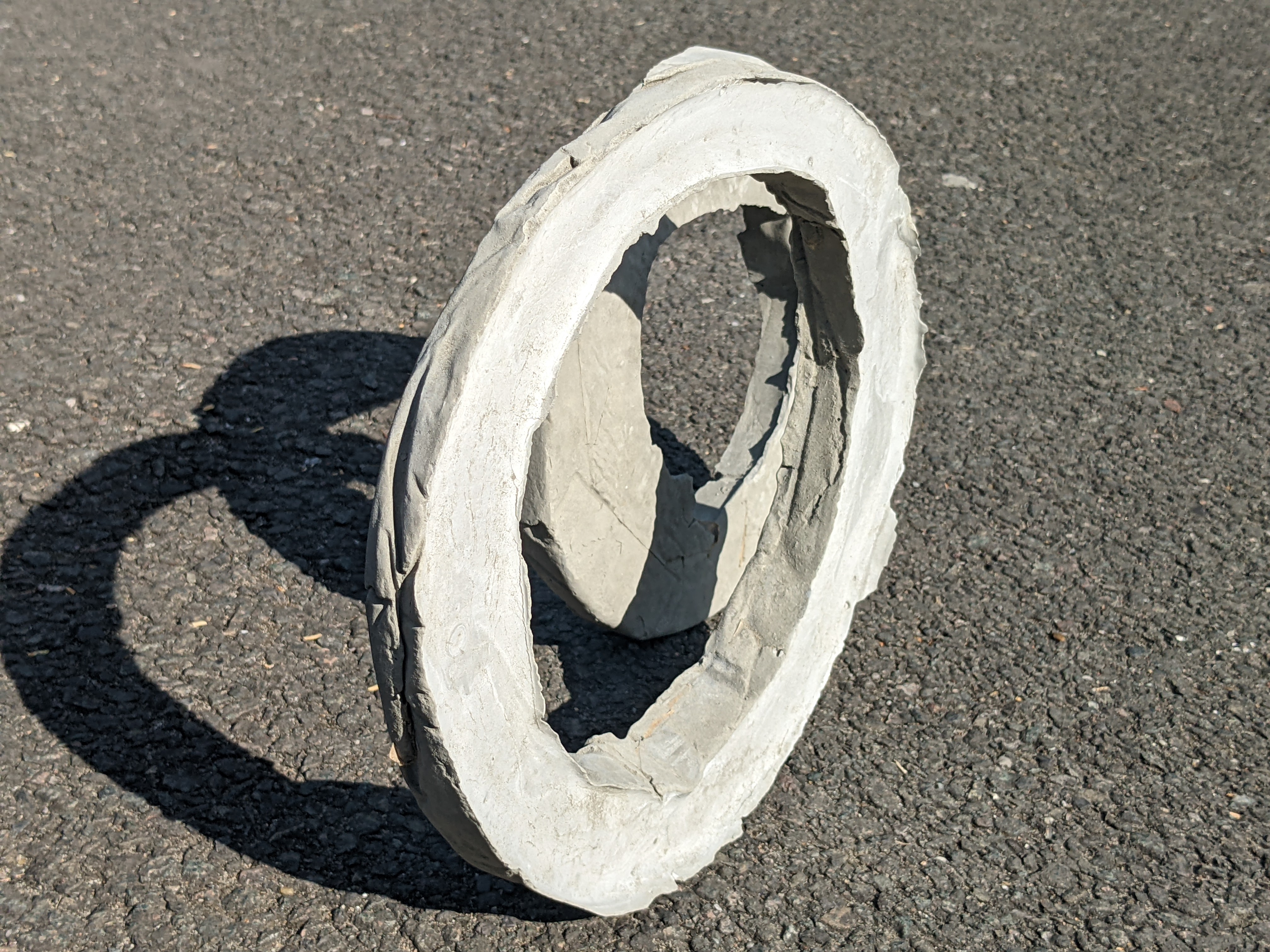 mixed media installation of 32 hand-cast cement rings, 2022